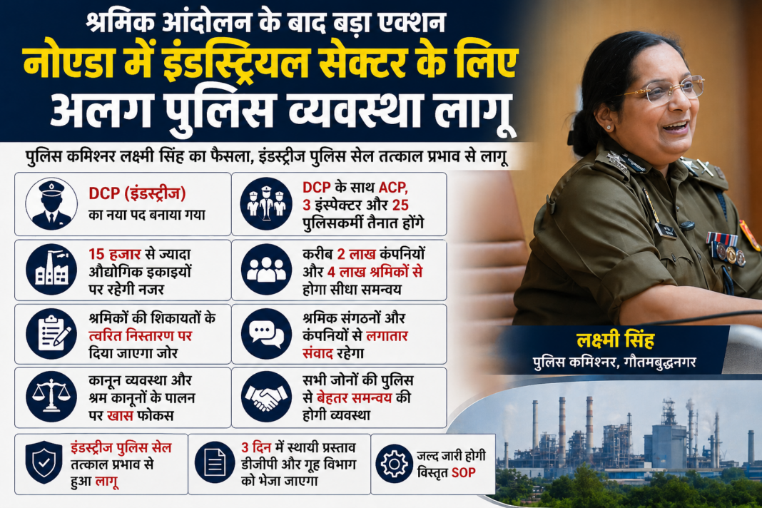 हालिया श्रमिक आंदोलन के बाद गौतमबुद्धनगर पुलिस कमिश्नरेट ने इंडस्ट्रियल एरिया में कानून-व्यवस्था और श्रमिक मुद्दों को लेकर बड़ा फैसला लिया है। अब औद्योगिक क्षेत्रों के लिए अलग पुलिस व्यवस्था लागू की गई है, जिससे कंपनियों और श्रमिकों के बीच बेहतर समन्वय स्थापित किया जा सके।