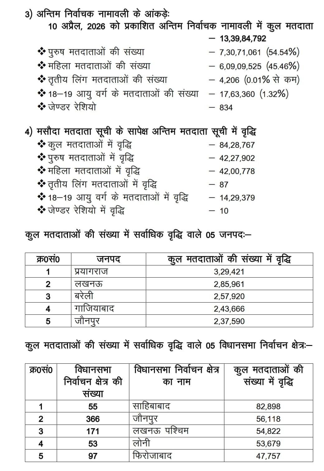 13.39 करोड़ वोटर, बदला यूपी का चुनावी गणित: महिलाओं की तेज बढ़त, नए आंकड़ों ने बढ़ाई सियासी हलचल